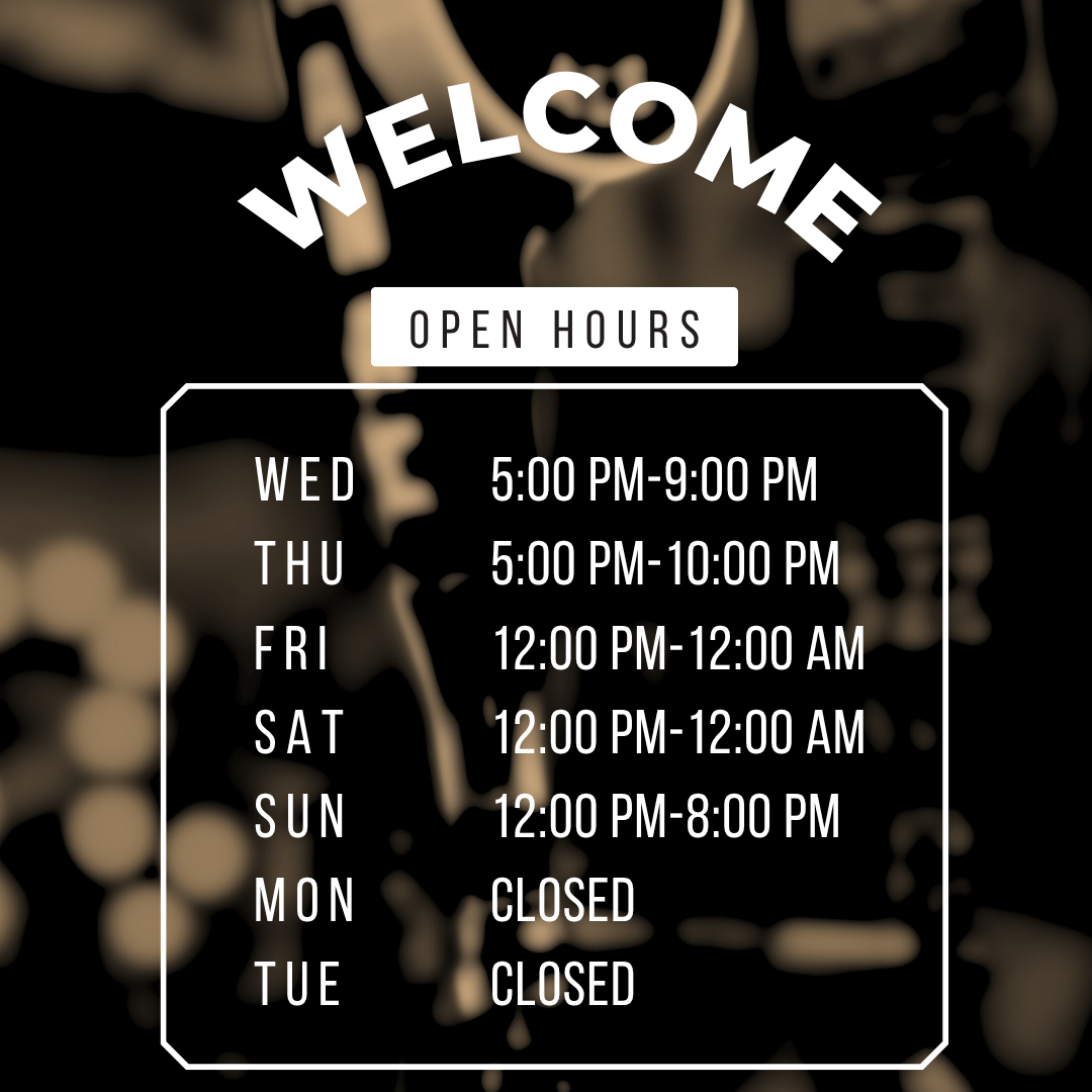 Wednesday 5:00 PM - 8:00 PM (Limited Menu) - Burger Night Special!