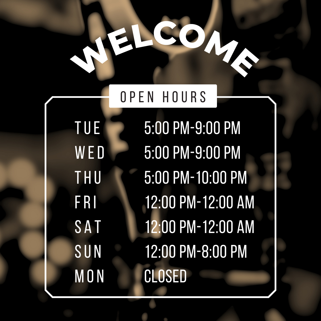 Tuesday 5:00 PM - 8:00 PM (Limited Menu)